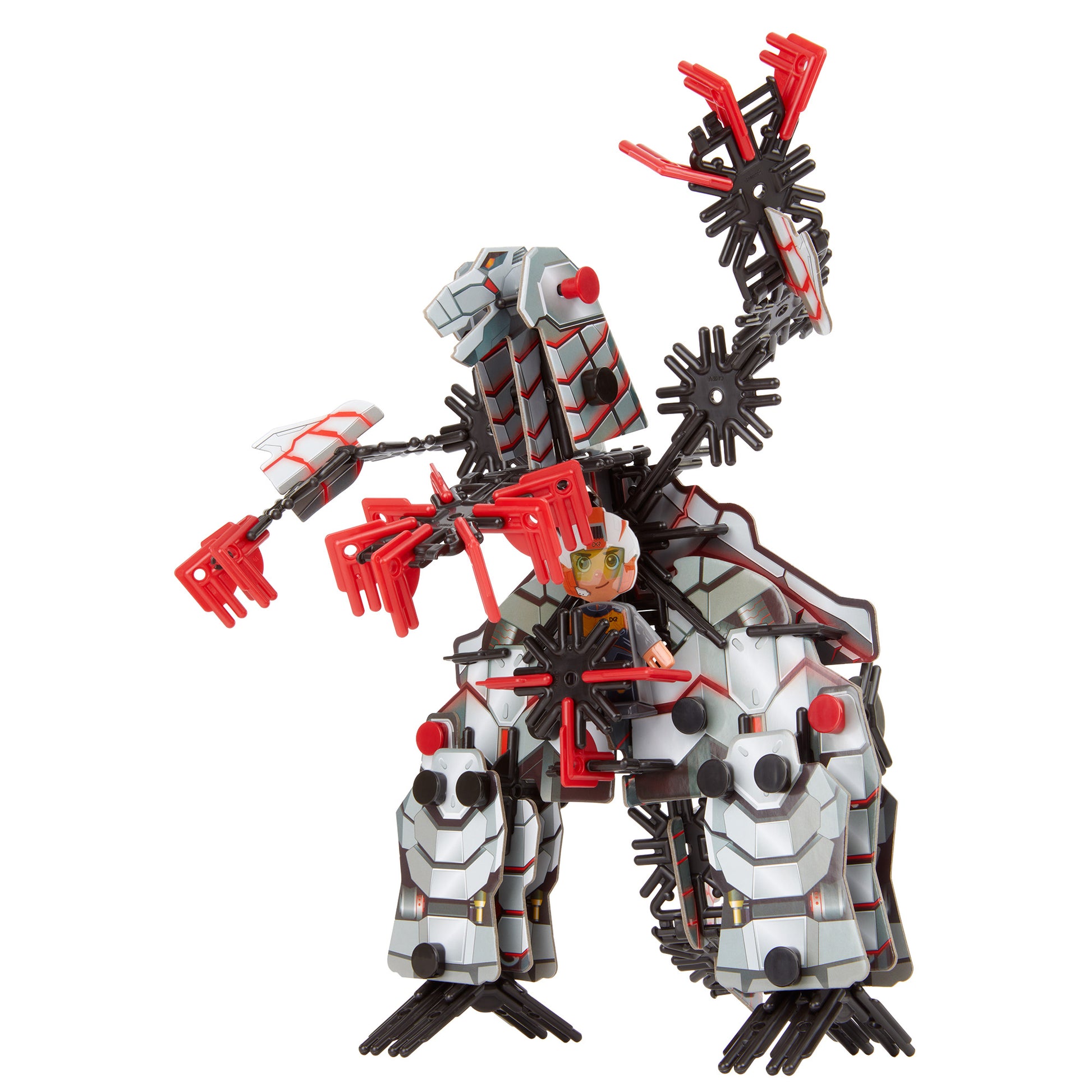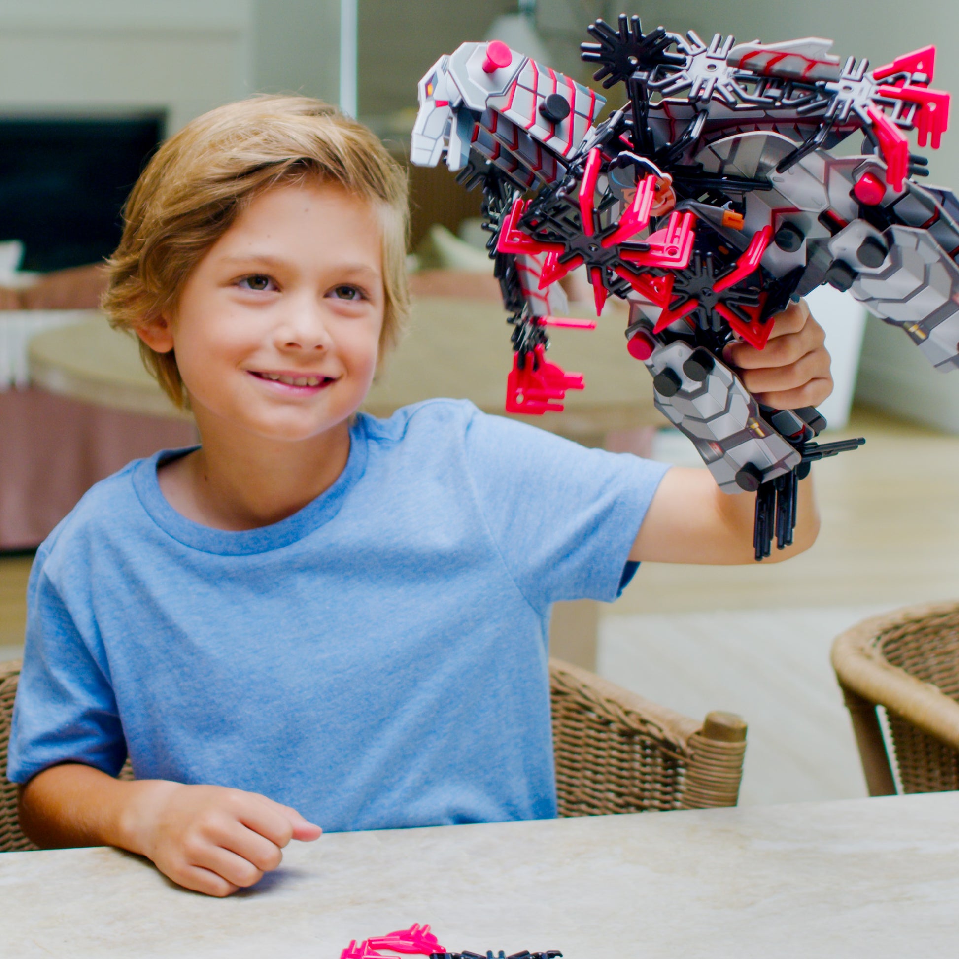 - The 12” Dexor T-Rex includes 115 pieces, including Derek with two interchangeable expressions, accessories, and a sticker sheet for customizing.