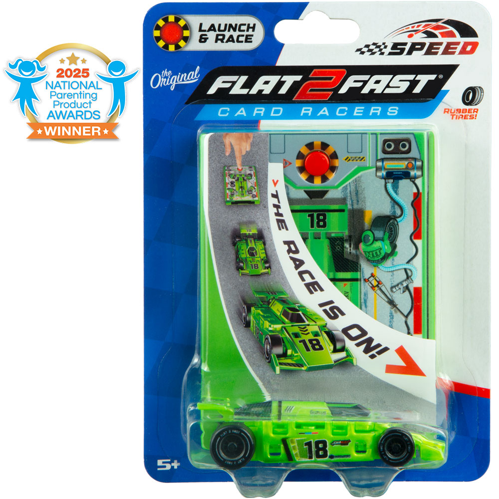 - THE ULTIMATE TOY RACING CAR: Just press the launcher button and watch ORIGINAL Flat 2 Fast SPEED Card Racers transform into ultra-fast racing cars! No batteries, remote control, or pullback needed!