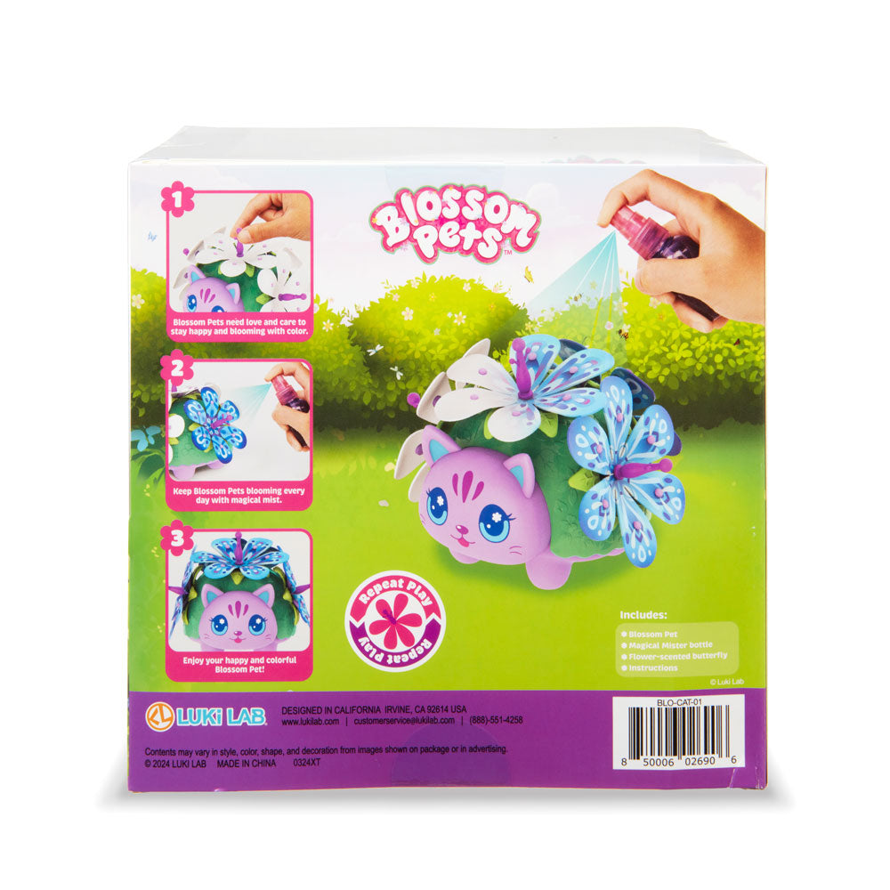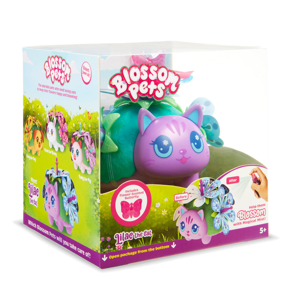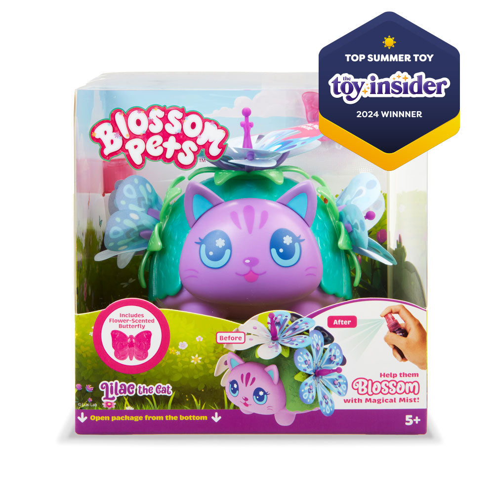 Lilac the Cat features four beautifully detailed fabric flowers. Simply spray her flowers with a light mist of water and see her vibrant colors appear! When the flowers dry, mist them again and again to reveal their color and keep Lilac blooming. Includes 4.5” pet, mister bottle, and flower-scented butterfly that attaches to the flower stem.